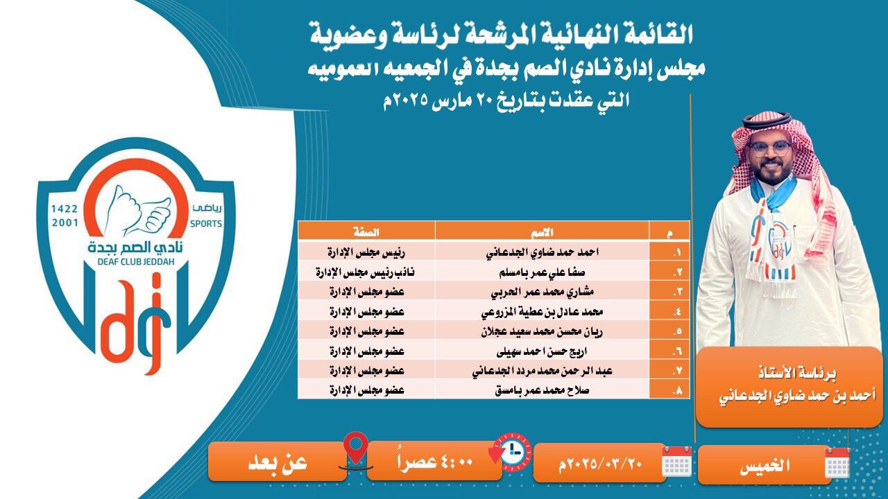 نهنئ الأستاذ أحمد الجدعاني وأعضاء مجلس إدارة نادي الصم بجدة بمناسبة اعتماد رئاسته…