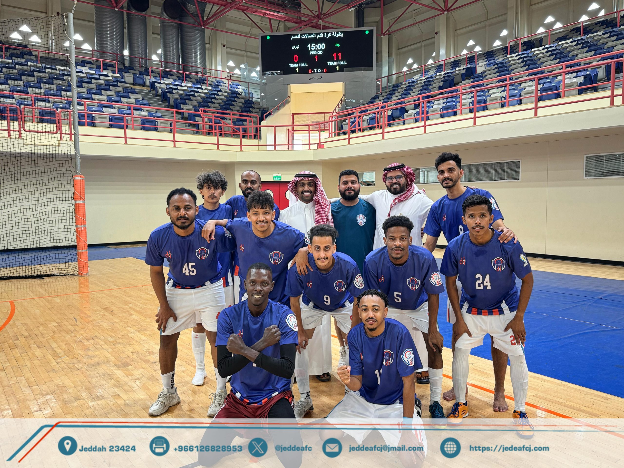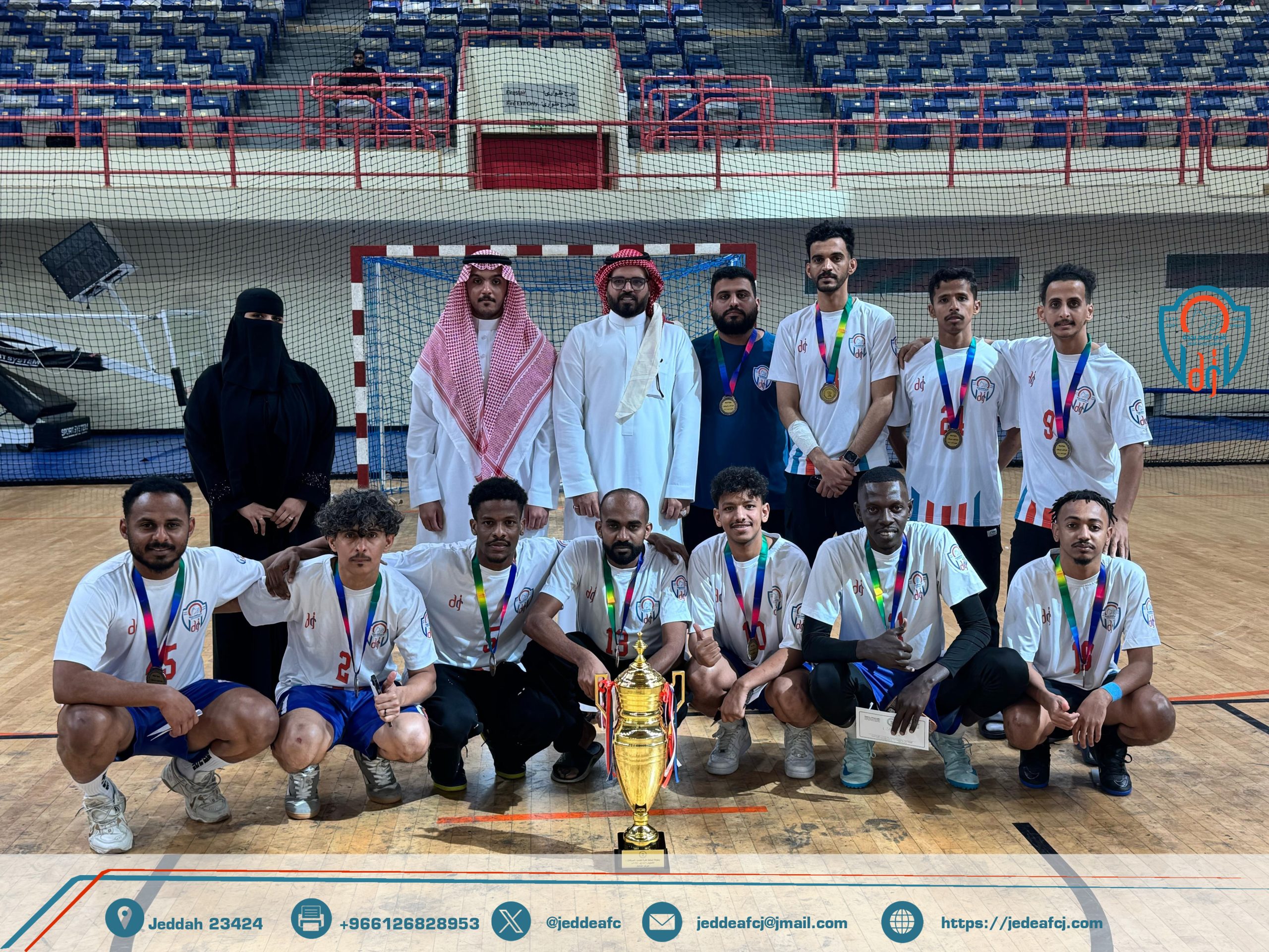 حقق فريق #نادي_الصم_بجدة لخماسيات كرة القدم المركز الثالث في بطولة المملكة لكرة القدم للصالات للصم ضمن البرنامج الزمني #للاتحاد_السعودي_لرياضة_الصم للموسم الرياضي 2025 والتي التي اقيمت على صالة مدينة الأمير نايف بالقطيف خلال الفترة من 21 إلى 26 شوال المقبل الموافق من 19 إلى 24 أبريل 2025 بمشاركة 10 فرق تم توزيعها على مجموعتين ضمت المجموعة الأولى فرق ” نادي الصم بجدة ، مركز الصم بالطائف, مركز الصم بصامطة ، مركز الصم بنجران ، مركز الصم بالمدينة المنورة ” فيما ضمت المجموعة الثانية فرق ” مركز الصم بالأحساء ، مركز الصم بأبهاء، مركز الصم بالباحة ، مركز الصم بحائل ، مركز الصم بالقطيف ” .