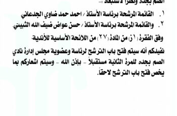 اعلان فتح باب الترشح لرئاسة وعضوية مجلس إدارة #نادي_الصم_بجدة للمرة الثانية